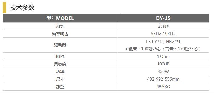 应用领域: 户外中、小型演艺、音乐会、室内多功能厅、广场舞娱乐场所 型号 MODEL DY-15