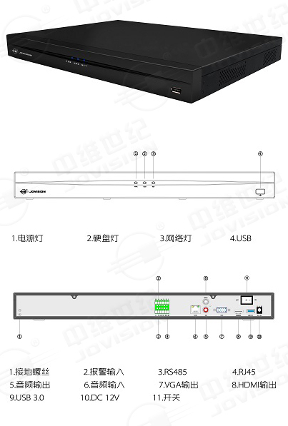 中维JVS- ND7924-HA系列是公司最新研发推出的一款24路多盘位(最多四盘位)网络高清录像机,采用标准的H.265压缩算法、嵌入式Linux实时操作系统,实现对IPC的集中管理、集中预览、集中录像、录像回放、设备管理、远程设置IPC、区域遮挡、外接报警设备等多种实用功能。该产品既可以进行本地独立工作,也可联网组成一个强大的安全防范监控系统。