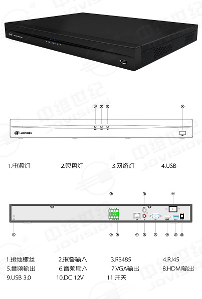 中维JVS- ND7916-HA系列是公司最新研发推出的一款16路多盘位(最多四盘位)网络高清录像机,采用标准的H.265压缩算法、嵌入式Linux实时操作系统,实现对IPC的集中管理、集中预览、集中录像、录像回放、设备管理、远程设置IPC、区域遮挡、外接报警设备等多种实用功能。该产品既可以进行本地独立工作,也可联网组成一个强大的安全防范监控系统。